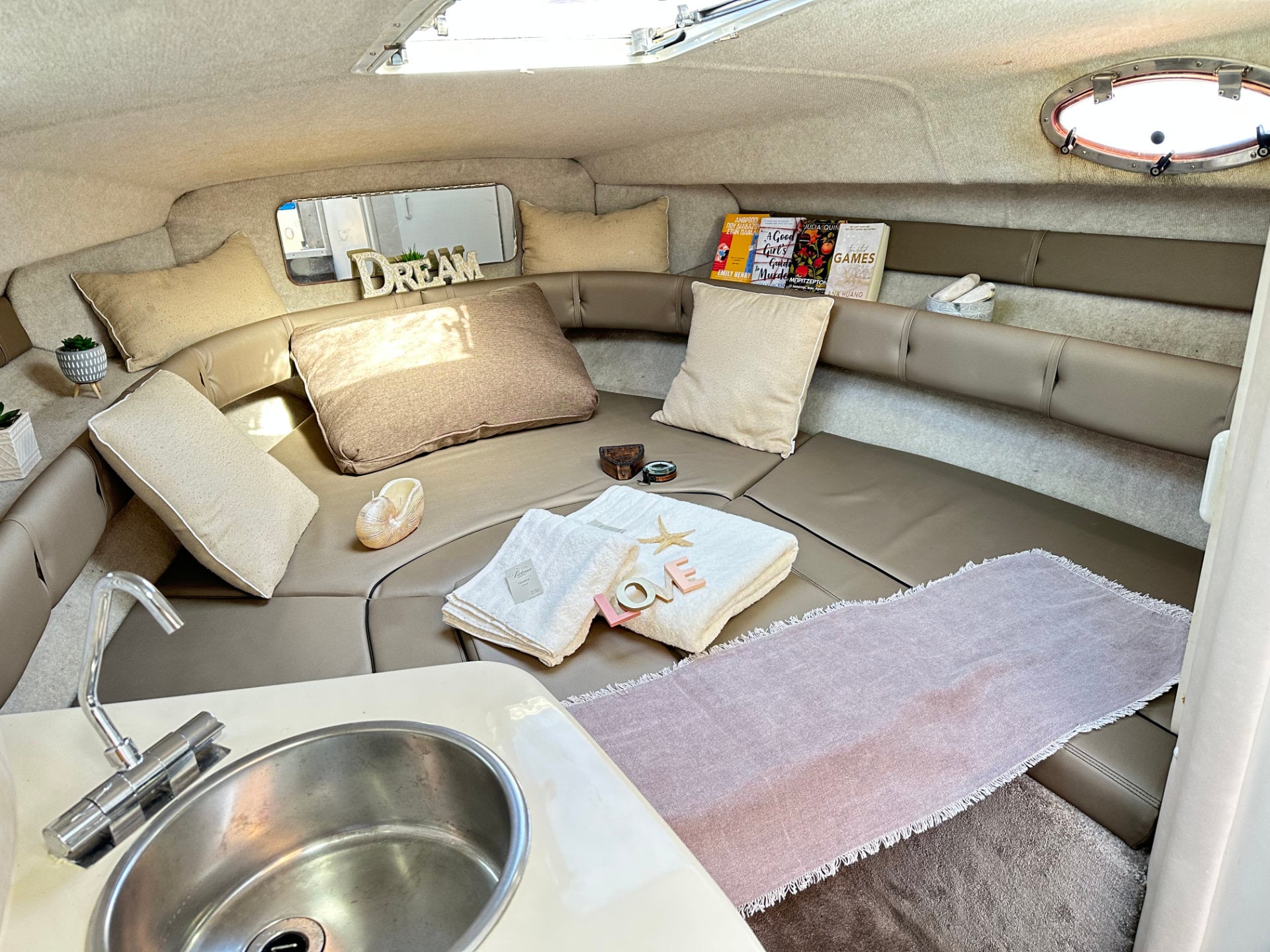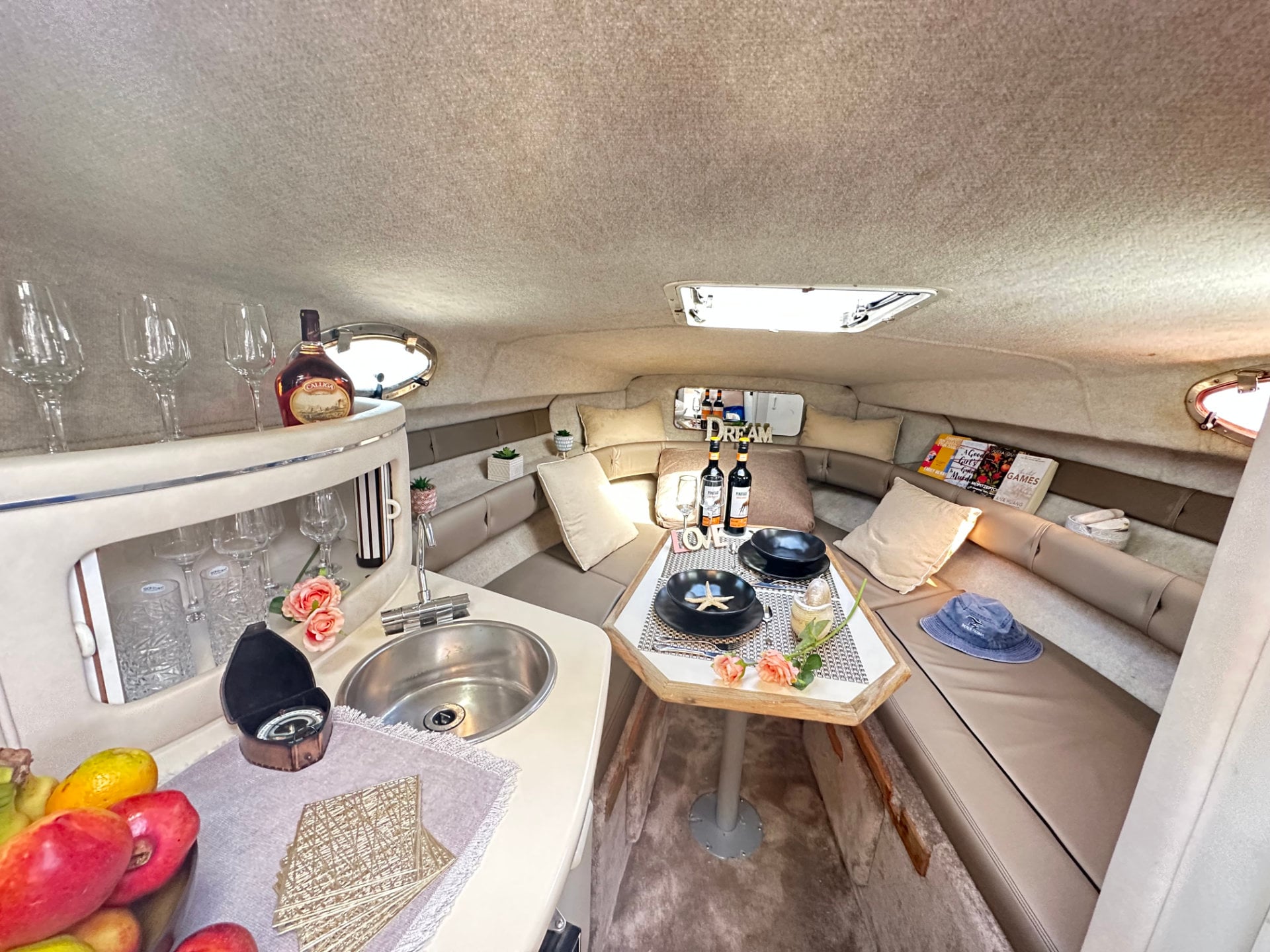 Salon conversion into double berth: